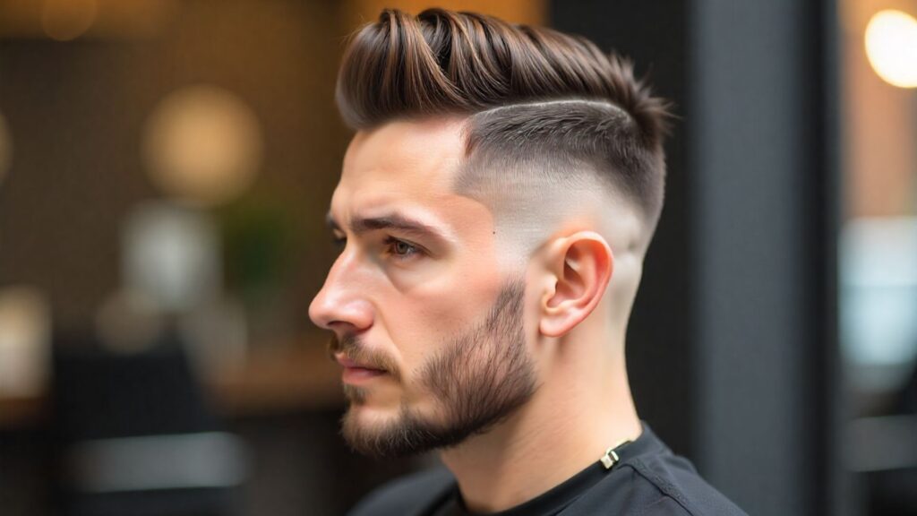 The pompadour is a bold, voluminous style that’s become a favorite among stylish guys. The front is swept upward and backward, while the sides are kept shorter.